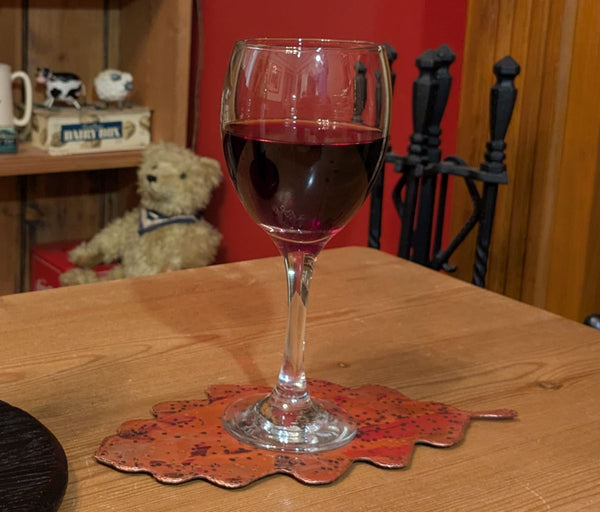 This Yakisugi oak barrel lid style display plinth along with an attractive flame-painted pure copper drinks coaster in the shape of an oak leaf comes as an attractive set perfect for displaying your favourite bottle of alcohol for example Wine,Whisky, Brandy, Cognac, Gin etc. or indeed purchase as the perfect gift for a friend or loved one